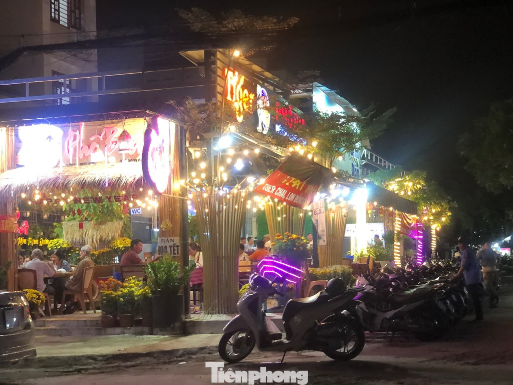 Nguyên cả dãy dài đèn sáng rực rỡ, mở cửa đến tận khuya để phục vụ khách trong đêm 29 Tết.