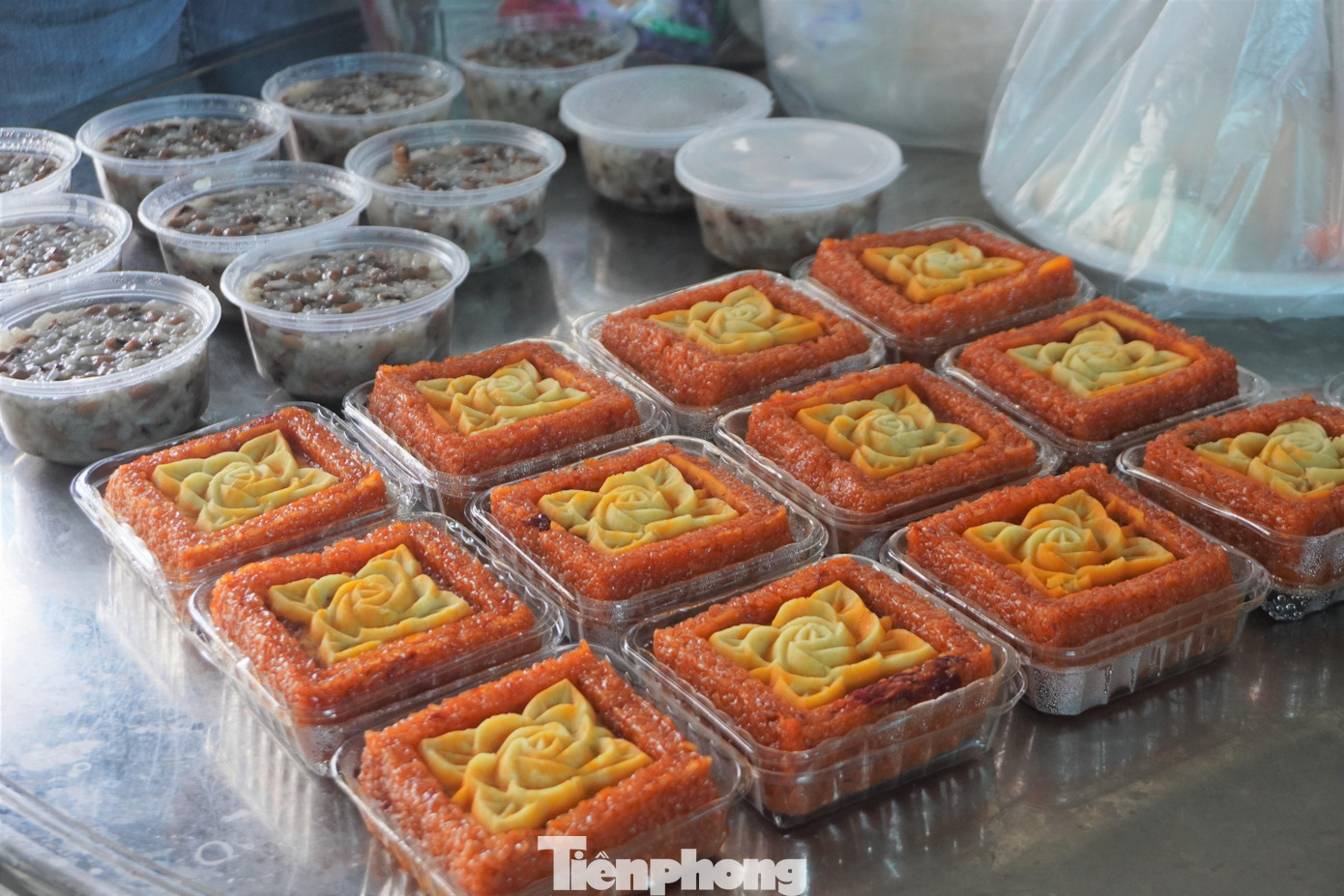 Trọn gói mâm cỗ bao gồm đồ ăn, hoa và vàng mã.