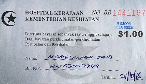 Ông Trần Văn Trường, Giám đốc Công ty tổ chức du lịch, người trực tiếp đưa bà vào viện, kể: "Tôi được hướng dẫn đến phòng đăng ký bệnh nhân. Chi phí ban đầu là 20 đôla Brunei, tôi không còn tiền Brunei trong túi nên trả bằng 20 đô Singapore". Tại Brunei vẫn chấp nhận thanh toán bằng tiền Singapore với tỷ giá tương đương, 20 đôla Singapore nếu quy đổi ra tiềng Việt thì khoảng 320.000 đồng.