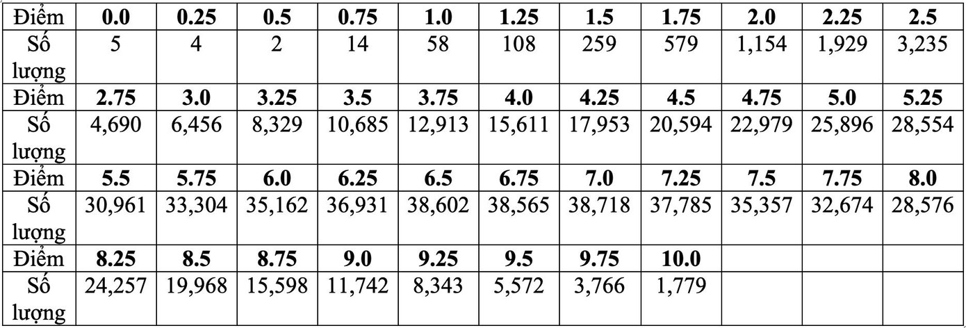 Chi tiết số bài thi đạt các mốc điểm thi tốt nghiệp THPT 2022: