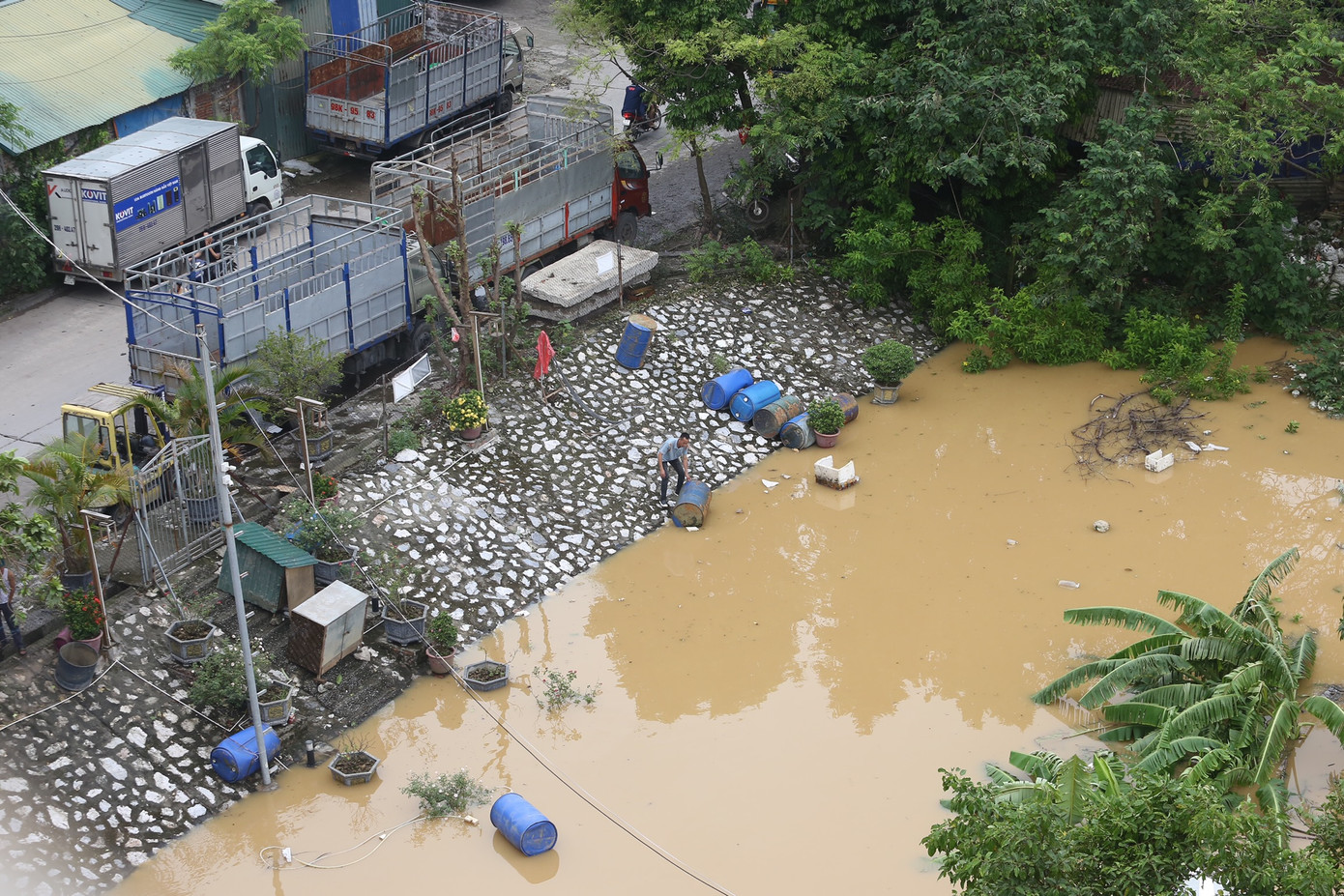 | Nhiều công trình tại bãi đất chân cầu Vĩnh Tuy ngập lụt. |
