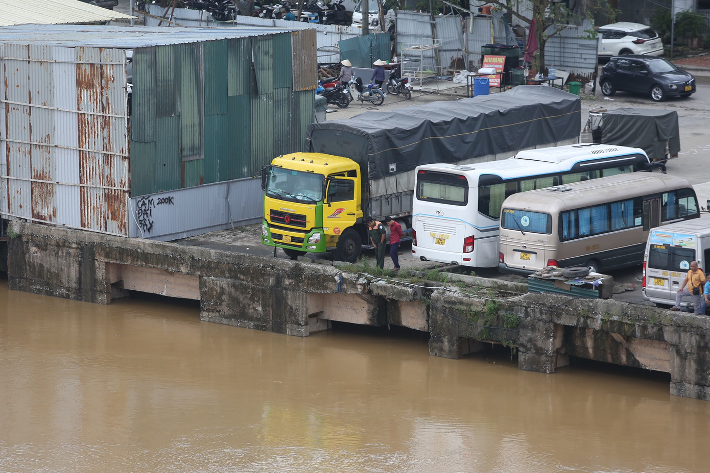 | Mực nước sông Hồng cách đường Bạch Đằng chỉ vài mét. |
