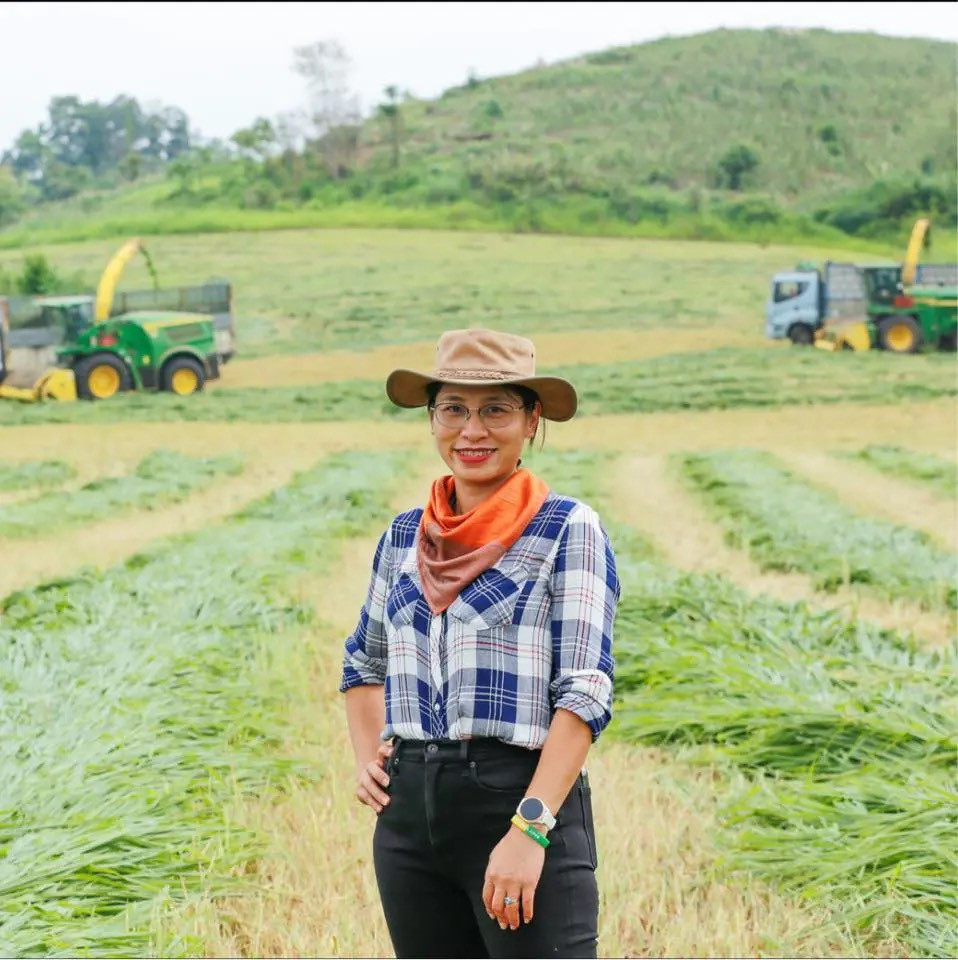 | Một bạn gái tạo dáng ở đồng cỏ mombasa của trang trại TH. Ảnh: Facebook Vân Anh |