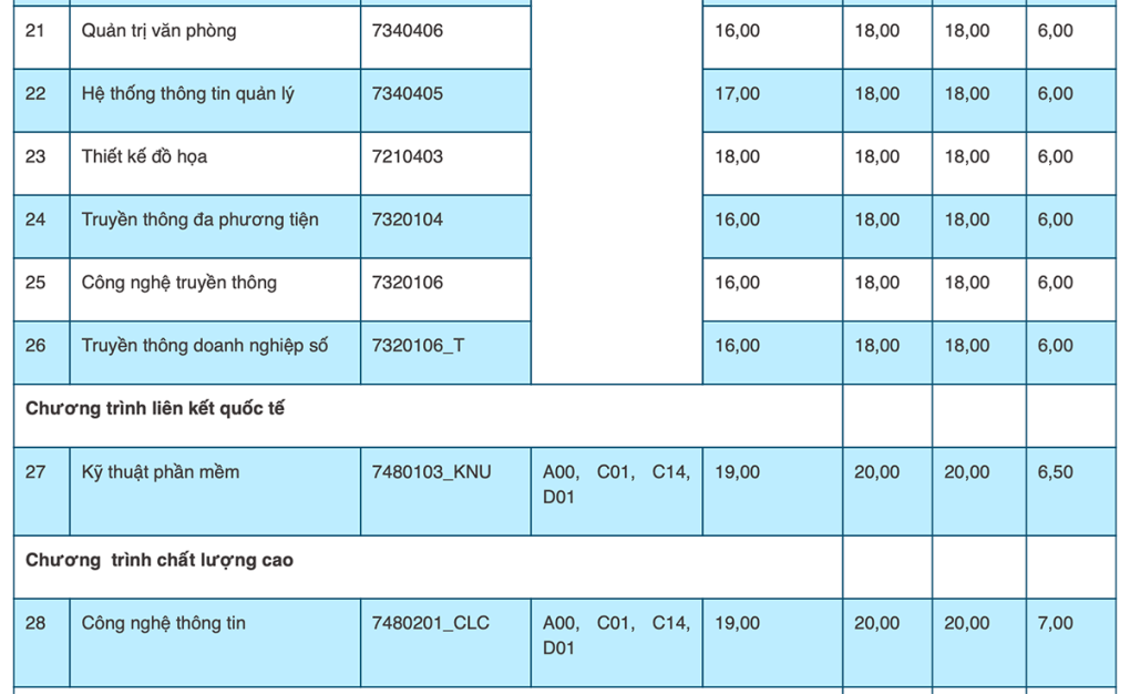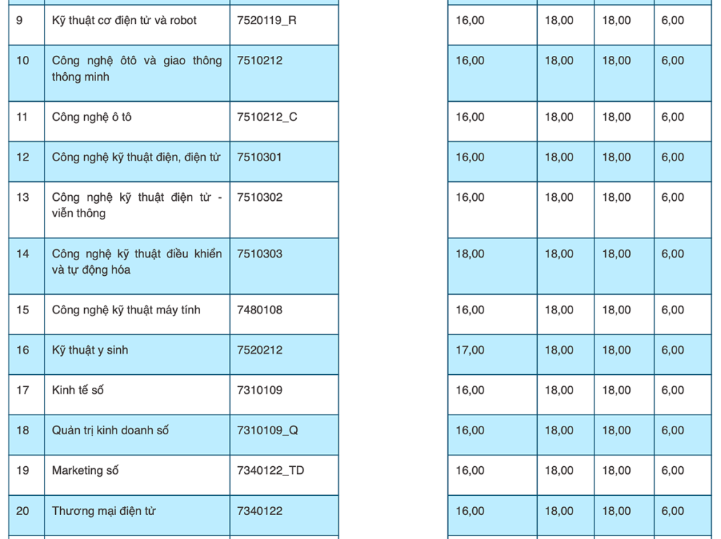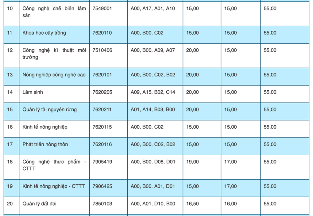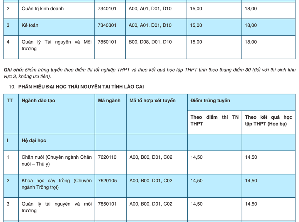 Tương tự năm ngoái, ở các trường thành viên khác, điểm trúng tuyển chủ yếu ở mức 15 đến 20. Một số ngành đào tạo ở phân hiệu Lào Cai lấy 14,5.