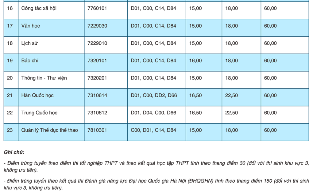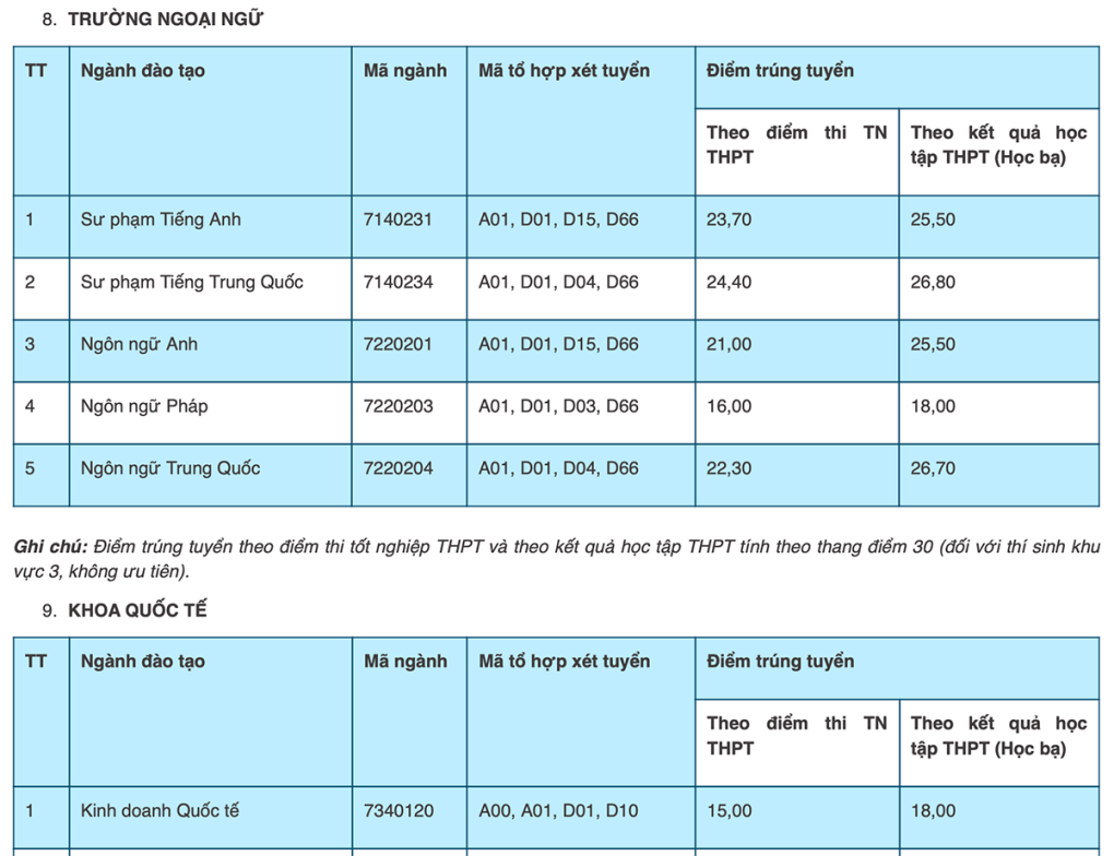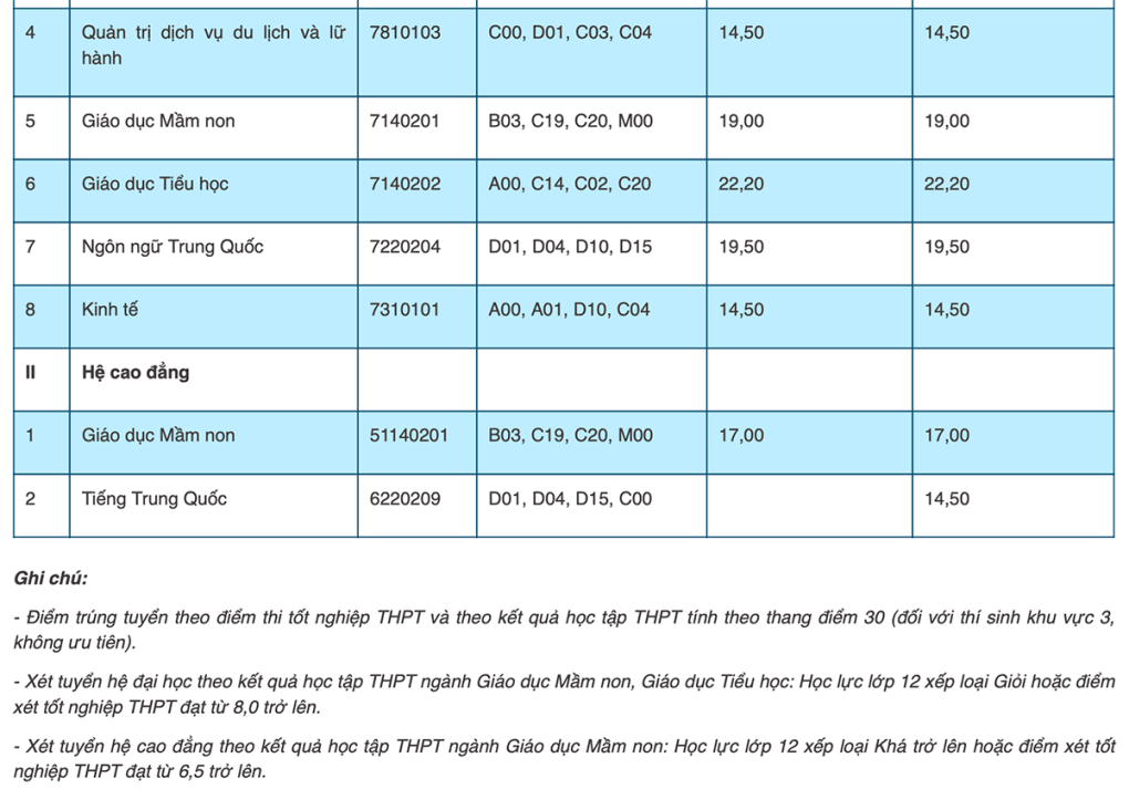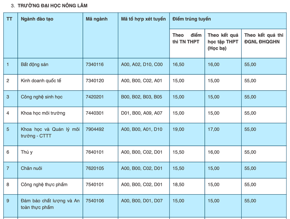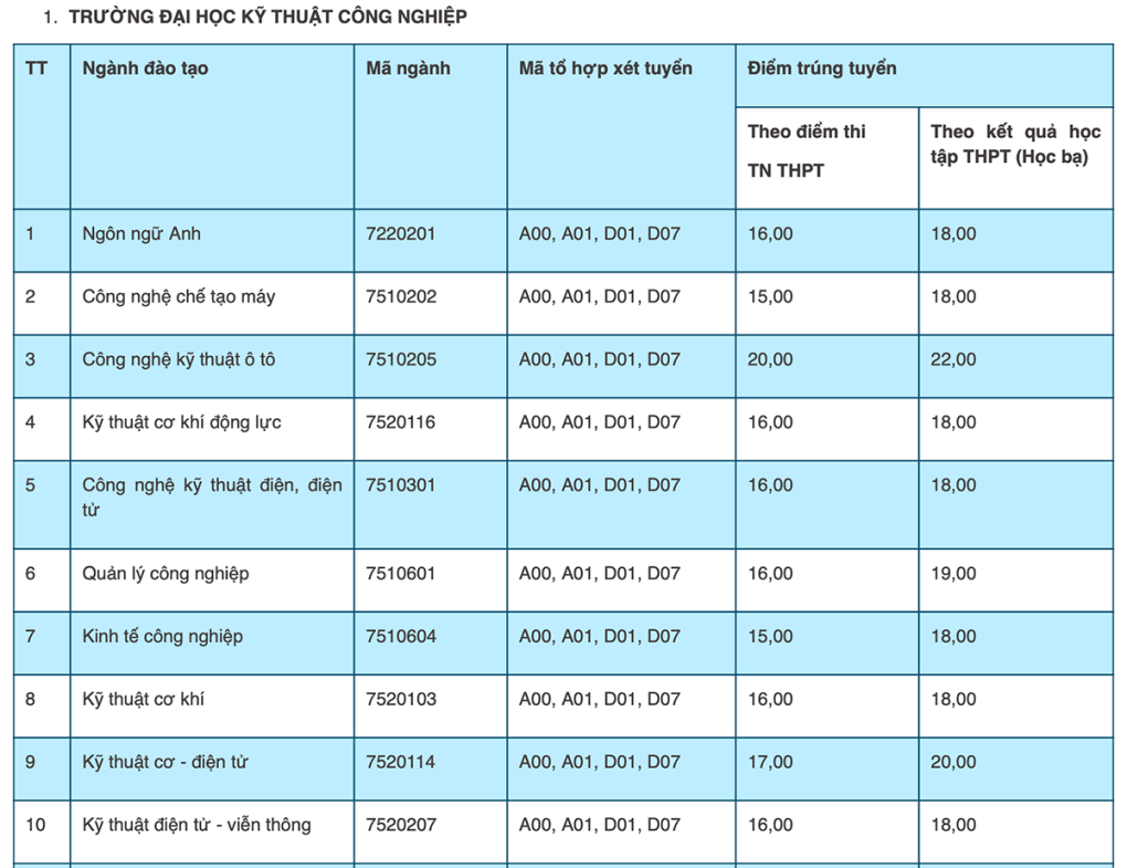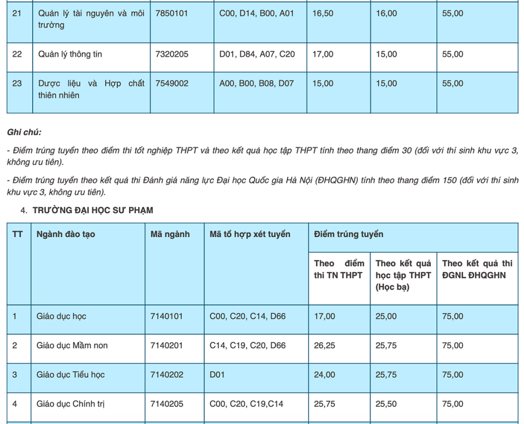 Điểm chuẩn các trường thuộc Đại học Thái Nguyên cụ thể như sau: