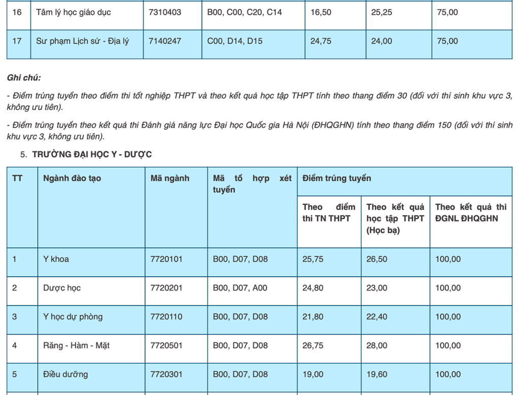 Hai ngành học có điểm chuẩn cao thứ nhì 26,75 là Sư phạm Ngữ văn của trường Đại học Sư phạm và Răng Hàm Mặt của trường Đại học Y Dược. Sư phạm và Y Dược cũng là hai trường có nhiều ngành lấy điểm cao nhất Đại học Thái Nguyên.
