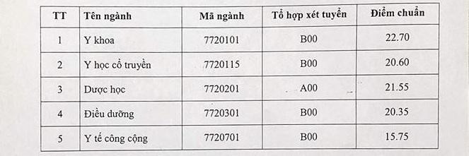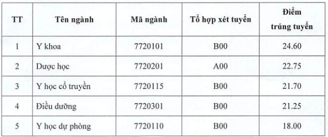 Năm 2019, điểm chuẩn của ngành Y khoa có mức điểm chuẩn cao nhất là 24,6; sau đó là ngành Dược học với 22,75 điểm.