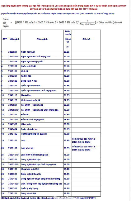 Điểm chuẩn được quy về hệ điểm 30. Điểm xét tuyển được xác định như sau (làm tròn đến 02 chữ số thập phân).