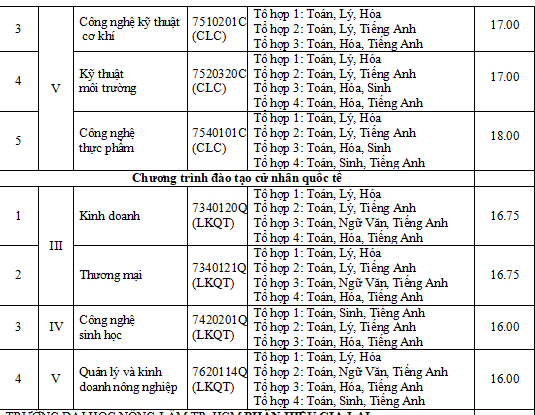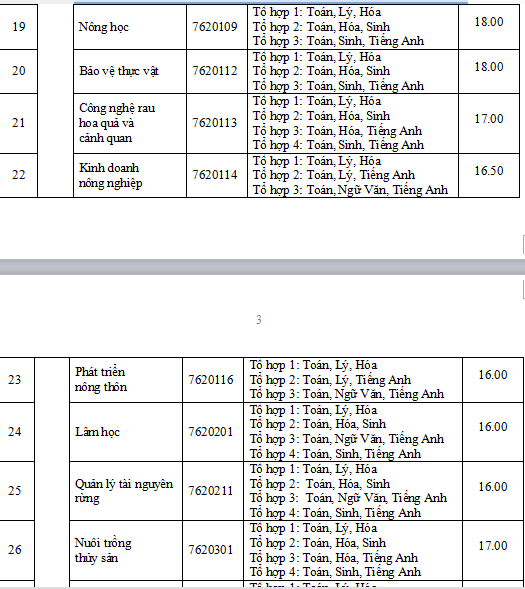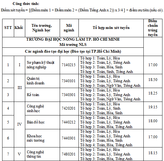 Cụ thể, trường đại học Nông lâm TPHCM có điểm chuẩn dao động từ 16- 20 điểm. Còn tại 2 phân hiệu khác ở Gia Lai và Ninh Thuận, điểm chuẩn là 15 điểm cho tất cả các ngành.