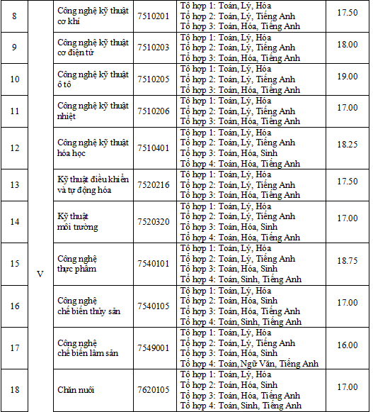 Điểm trúng tuyển từng ngành cụ thể như sau: