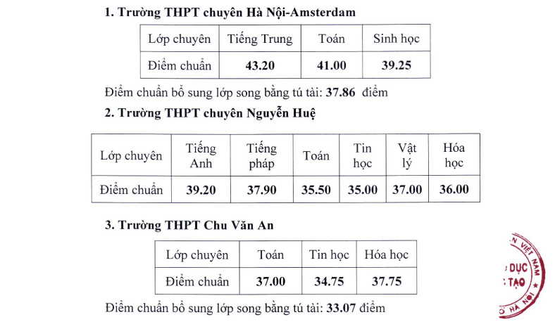 Chiều nay, 15/7, Sở GD&ĐT Hà Nội đã có quyết định điểm chuẩn trúng tuyển bổ sung vào lớp 10 THPT công lập năm học 2022-2023.