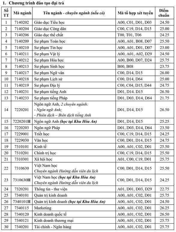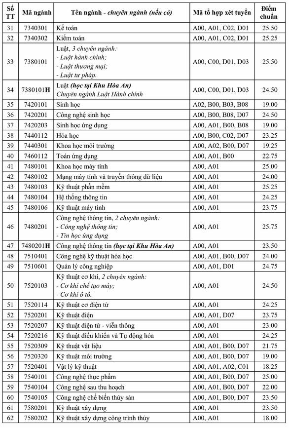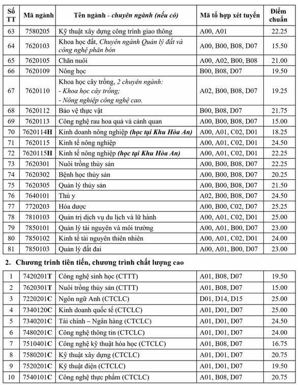| Điểm chuẩn các ngành đào tạo của trường ĐH Cần Thơ. |