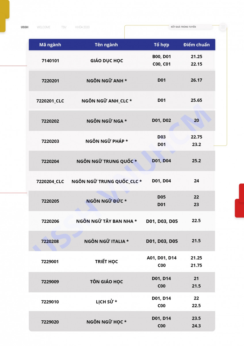Cụ thể, Trường ĐH KHXH&NV TPHCM điểm chuẩn năm nay dao động từ 22- 27,50 điểm. Ngành Báo chí (tổ hợp C00) là ngành có điểm chuẩn cao nhất với 27.50 điểm. Điểm chuẩn thấp nhất là 20.00 điểm thuộc về ngành Ngôn ngữ Nga.
