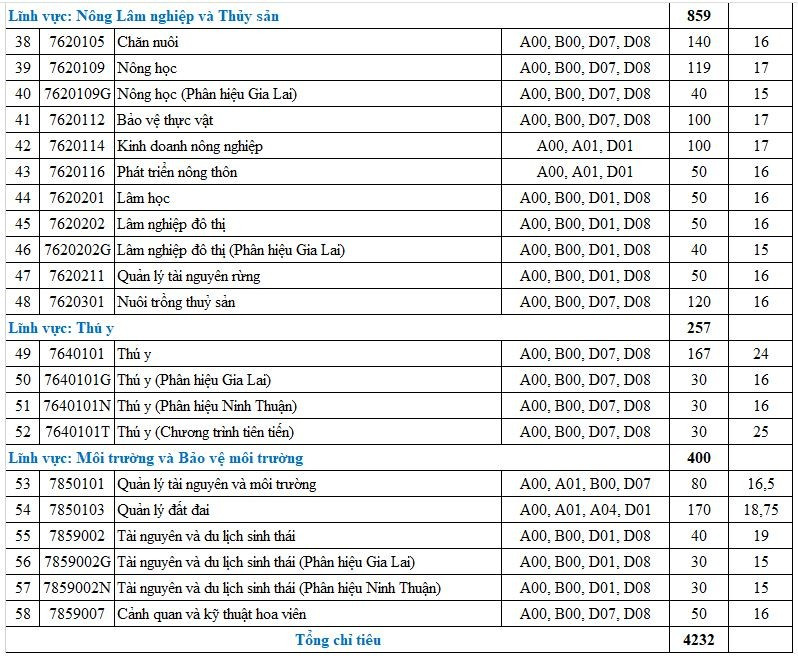Được biết, năm nay, trường ĐH Nông Lâm TPHCM tuyển hơn 4.200 chỉ tiêu. Điểm sàn của trường trước đó đưa ra từ 16-21 điểm cho 41 ngành học của cơ sở chính tại TPHCM.…