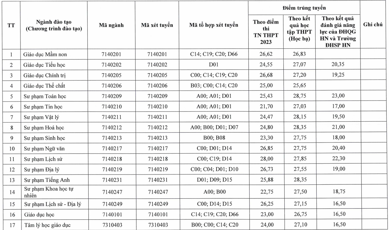 Ngành có điểm chuẩn thấp nhất là Sư phạm Tin học với 21,7 điểm. Năm ngoái, ngành Sư phạm Lịch sử cũng lấy điểm chuẩn vào trường cao nhất.