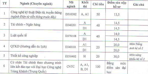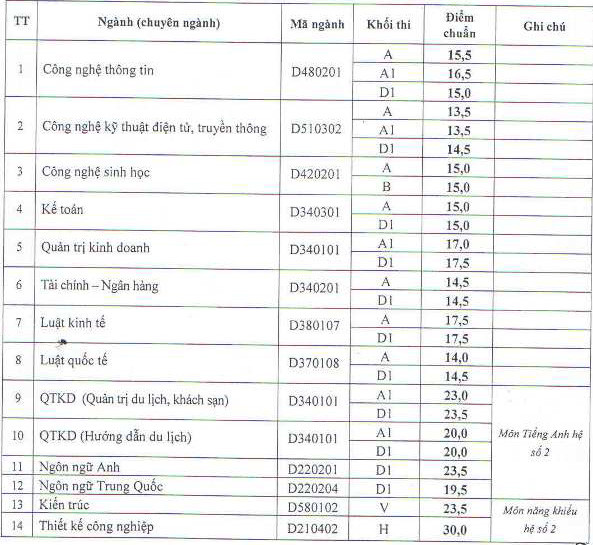 Môn Tiếng Anh và môn năng khiếu nhân hệ số 2.