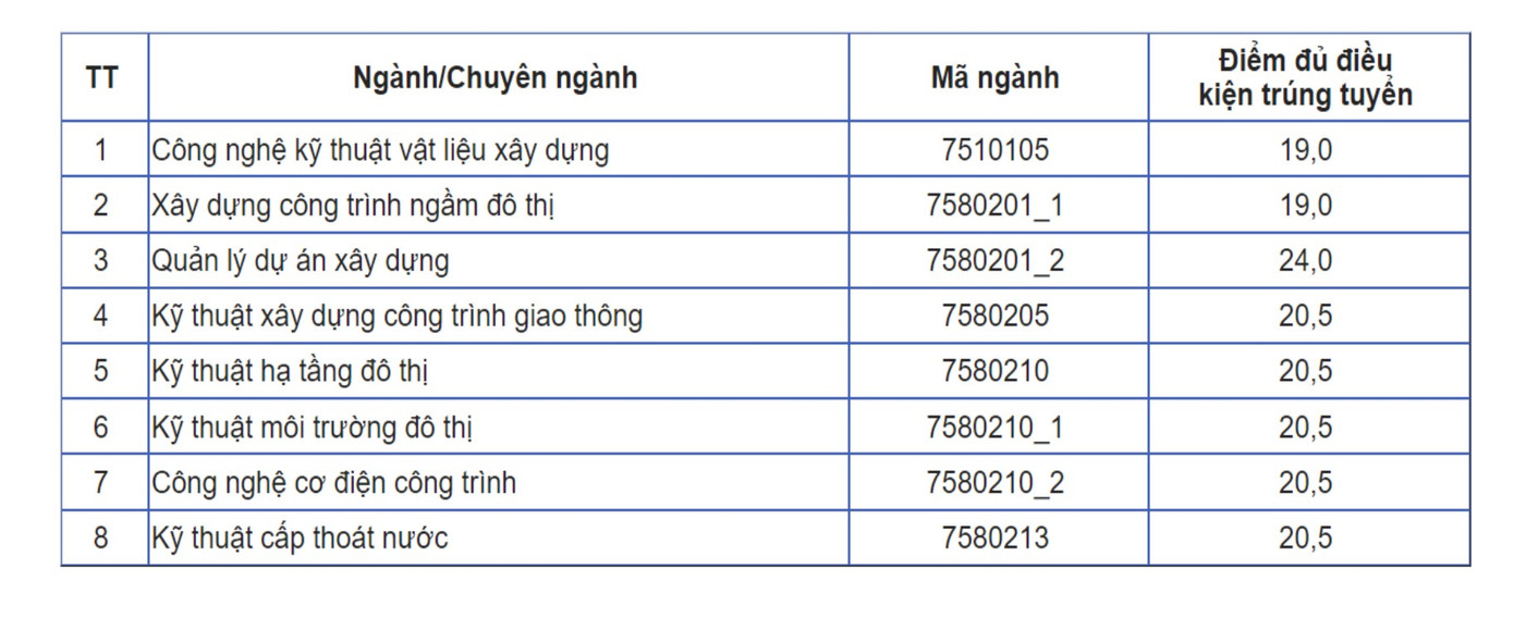 Theo Quyết định này, có 8 ngành đào tạo của Trường Đại học Kiến trúc Hà Nội xét kết quả học bạ.