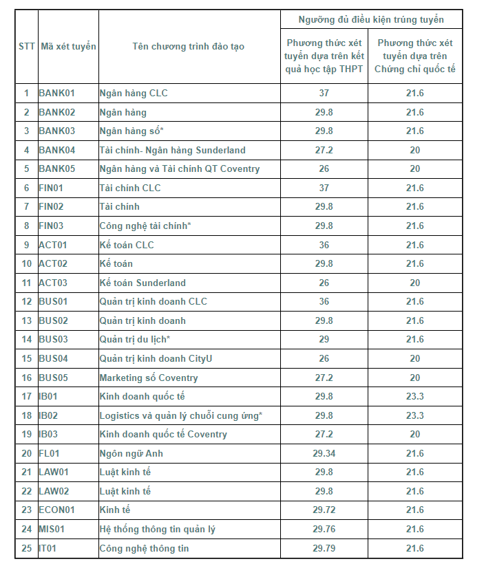 Đối với chứng chỉ SAT: Mức điểm đủ điều kiện trúng tuyển tương ứng với thí sinh đạt điểm SAT từ 1200 trở lên.