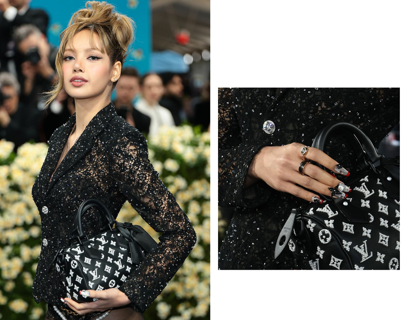 Những chiếc charm đầy sang trọng trên móng tay của Lisa mang đậm dấu ấn thương hiệu Louis Vuitton. Chúng không chỉ khẳng định nhiệm vụ Đại sứ thương hiệu của Lisa, mà còn thể hiện sự xa xỉ trong từng chi tiết nhỏ.