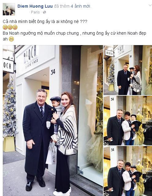 Diễm Hương viết: "Cả nhà mình biết ông ấy là ai không nè? Ba Noah ngưỡng mộ muốn chụp chung, nhưng ông ấy cứ khen Noah đẹp à".