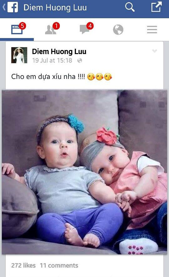 Người đẹp sinh năm 1990 cũng khiến nhiều người tò mò và đặt ra nghi vấn khi thường xuyên đăng tải những bức hình trẻ em dễ thương trên trang cá nhân. Bên cạnh đó, cô dành sự quan tâm tới chuyện sinh nở: "Nghe nói Việt Nam mình đang khuyến khích sinh. Có phải vì vậy mà đâu đâu cũng thấy đăng hình em bé mới sinh đỏ hỏn (so cute), rồi hôm qua giờ cứ thấy các bạn nữ đăng hình hai vạch, các bạn nam thì đăng hình tự sướng kể vợ sắp sinh. Gì chứ vụ này, người Việt Nam hưởng ứng mạnh mẽ và thực hiện nghiêm túc nhỉ?".