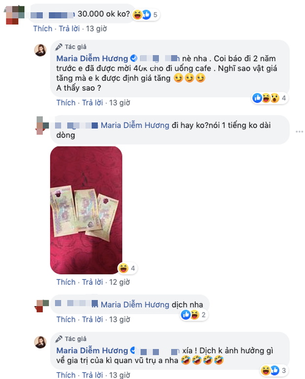 Thời điểm đó, Diễm Hương công khai tin nhắn của kẻ môi giới kèm dòng trạng thái cực gắt. "Sáng sớm nhé, chị không muốn nói chị có điều kiện. Nhưng em cứ ép chị nói ra không ạ. 400 triệu USD chị còn không cần đó. Chị nổi tiếng là bất cần tiền mà em”.