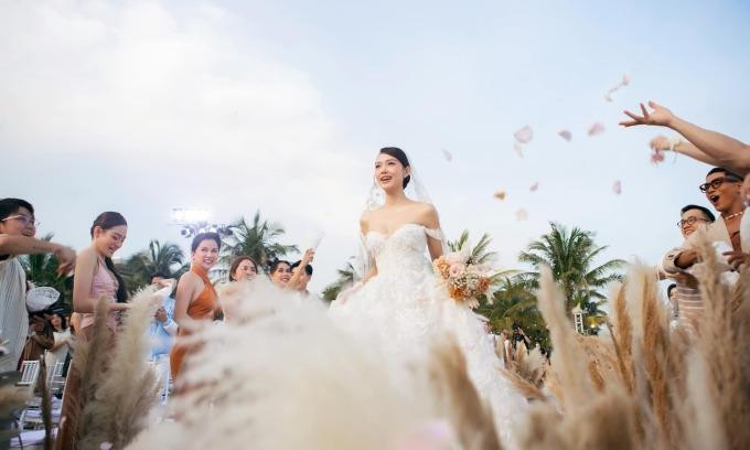 Buổi lễ trên bãi biển được diễn viên trang trí bằng loài hoa veronica – tượng trưng cho sự tự tin, mạnh mẽ và cũng là tên tiếng Anh của cô (Veronica Ngô).