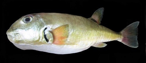 Trong 41 loài sinh vật độc trên có 5 loại cực độc là: Cá nóc răng mỏ chim, cá nóc tro, cá nóc vằn mặt, cá nóc chấm cam, cá nóc chuột vằn mang, trong đó cá nóc chấm cam và cá nóc chuột vằn mang là hai loài độc nhất. Ảnh: Cá nóc răng mỏ chim
