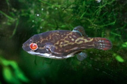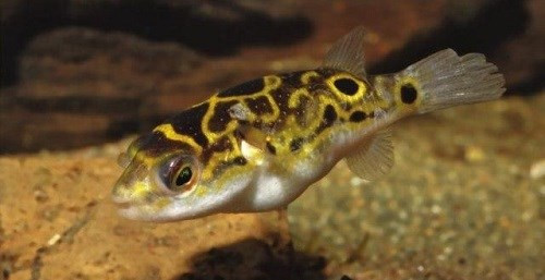 Riêng hai loài cá nóc nước ngọt được xác định là cá nóc chấm xanh (Chelonodon nigroviridis) và cá nóc mắt đỏ (Carinotetraodon lorteti) mới chỉ phát hiện được ở đồng bằng sông Cửu Long. Ảnh: Cá nóc mắt đỏ