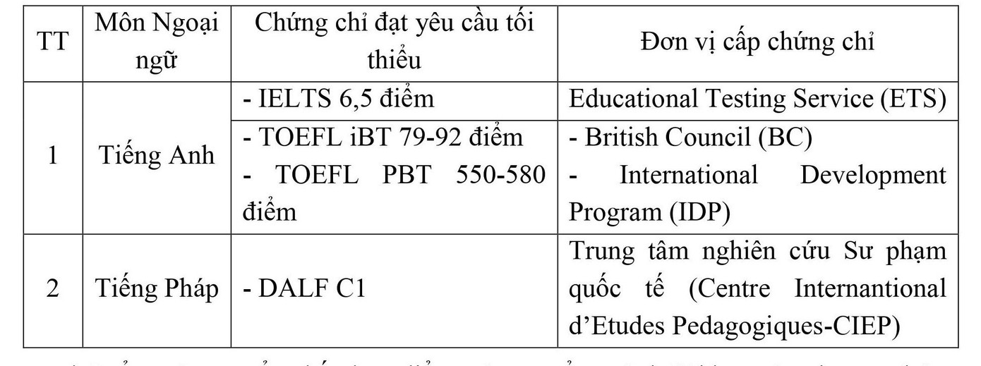 Phương thức xét tuyển 2: Xét tuyển kết hợp chứng chỉ tiếng Anh hoặc tiếng Pháp quốc tế đối với ngành Y khoa (mã ngành: 7720101_AP) đào tạo tại Hà Nội. Trong đó, điều kiện bắt buộc (điều kiện cần): Thí sinh phải có chứng chỉ tiếng Anh hoặc tiếng Pháp quốc tế hợp lệ, có giá trị sử dụng ít nhất đến ngày nộp hồ sơ (dự kiến trước ngày 15/6/2021) và đạt mức điểm tốt thiểu theo bảng dưới đây: