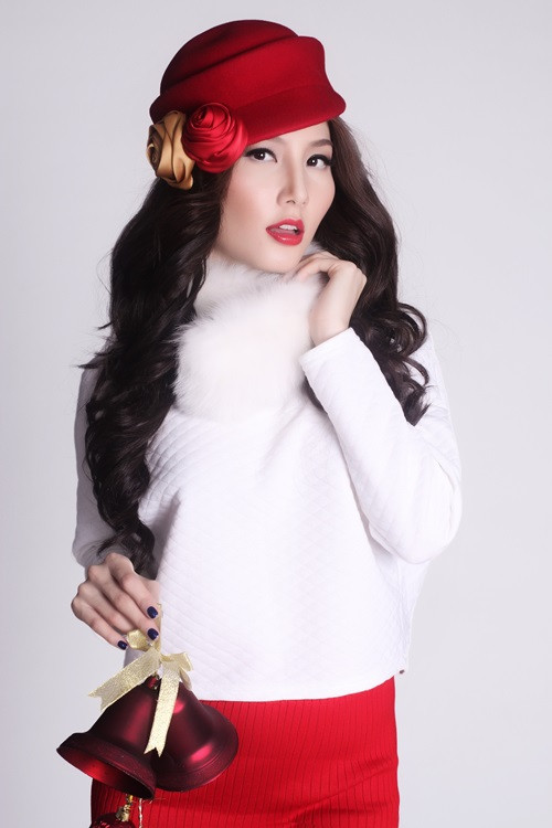| Diễm My chọn thêm chiếc bờm tóc sừng tuần lộc để thêm phần vui tươi, sinh động. |