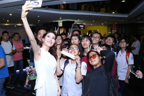 Diễm My 9X dành thời gian đi giao lưu với fan để quên đi chuyện buồn về tình cảm.