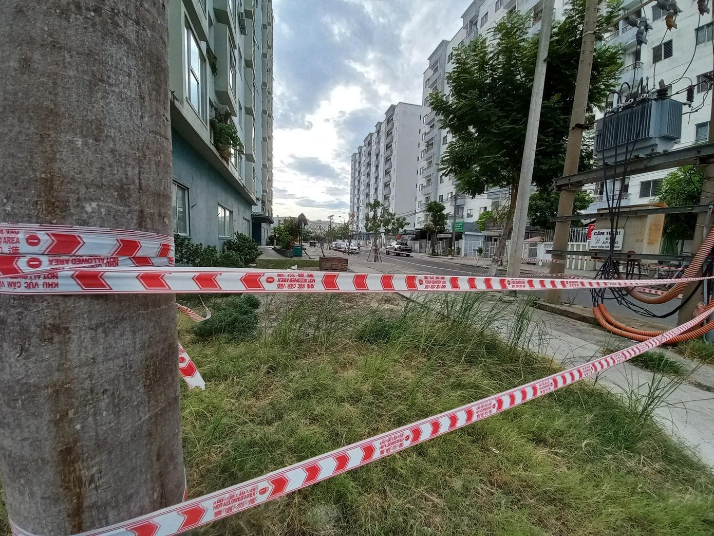 | Một khu chung cư trên địa bàn đã được giăng dây, thực hiện việc "phong tỏa trong phong tỏa" kiểm soát người ra vào chung cư để ngăn ngừa các mối nguy cơ lây lan dịch bệnh. |