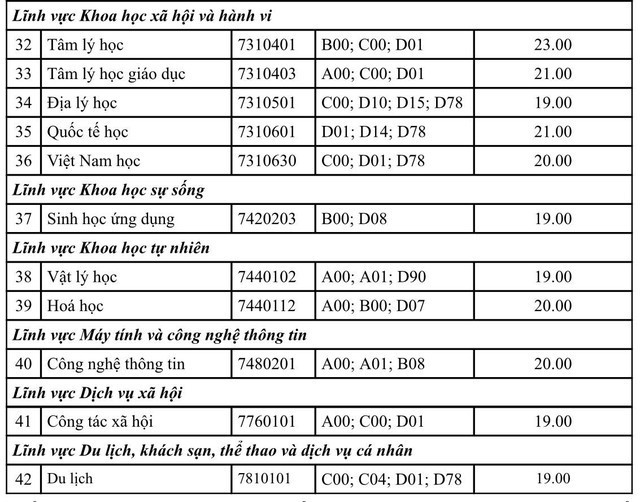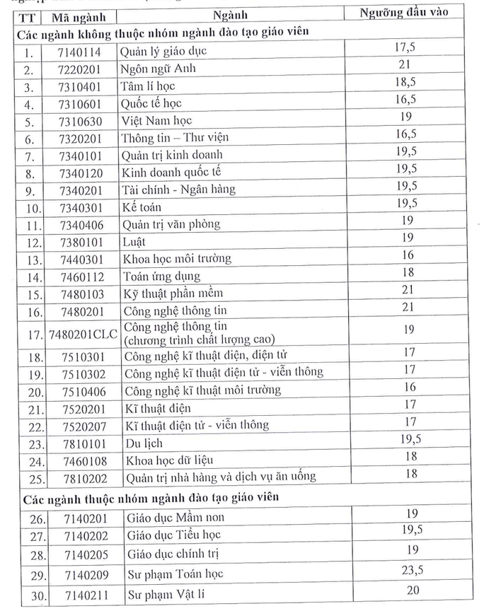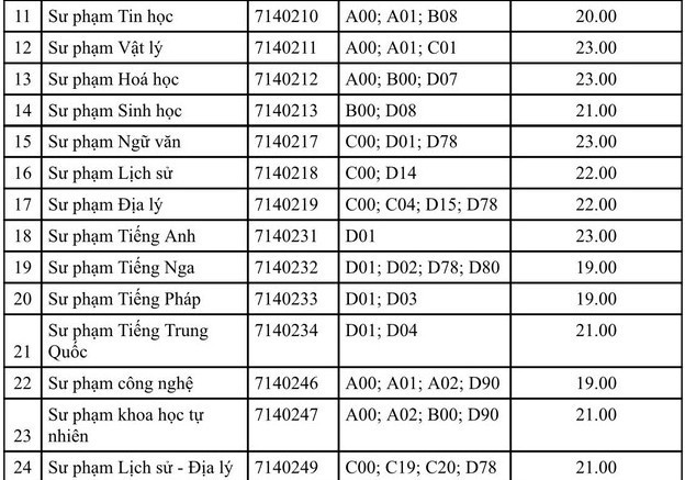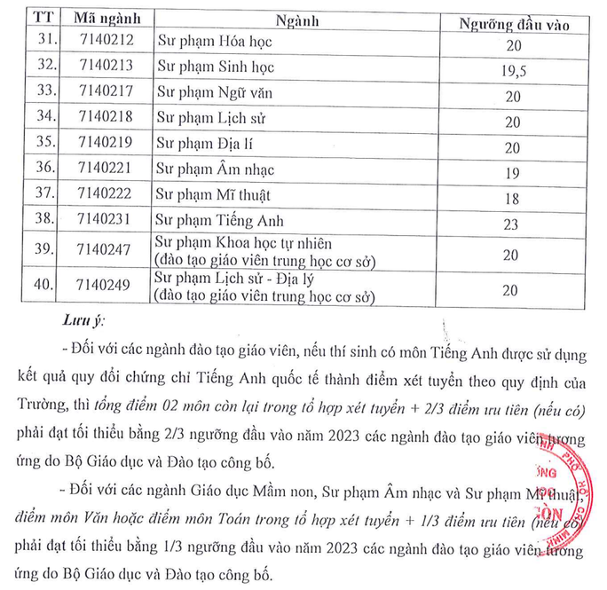 Tương tự, một số ngành đào tạo sư phạm Trường ĐH Sư phạm TPHCM cũng có điểm nhận hồ sơ xét tuyển từ 23 điểm trở lên.
