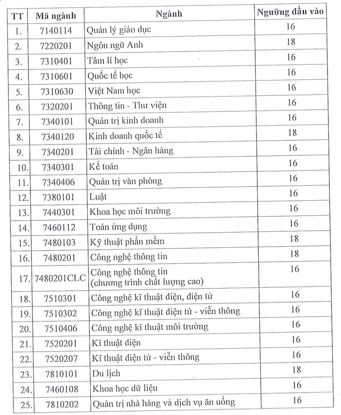 Với phương thức xét tuyển từ kết quả kỳ thi đánh giá đầu vào trên máy tính, điểm xét tuyển là tổng điểm 3 môn trong tổ hợp xét tuyển và điểm ưu tiên (nếu có) từ 16- 18 điểm. Điểm sàn từng ngành cụ thể như sau: