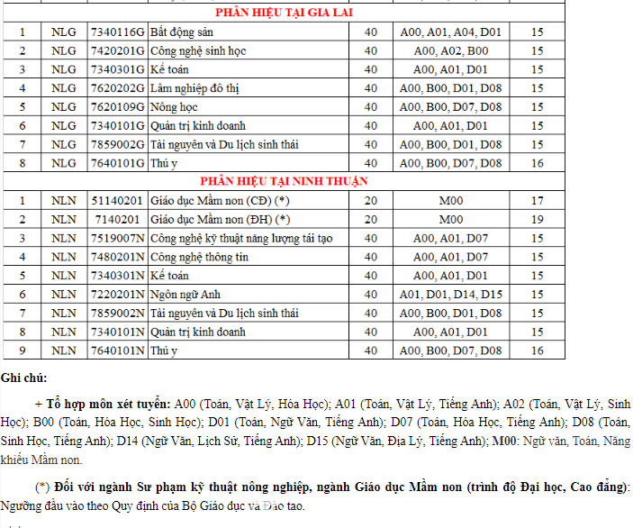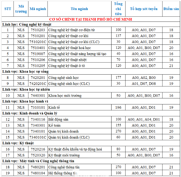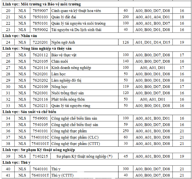 Điểm sàn của Trường ĐH Nông Lâm TP HCM vào các chương trình cụ thể như sau: