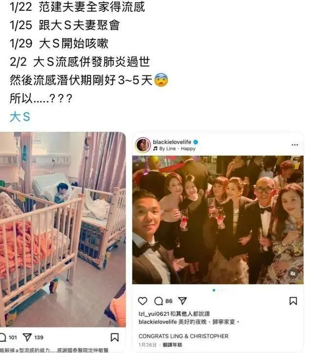 Sau khi tin tức về cái chết của Từ Hy Viên được thông báo, một số cư dân mạng đã tìm kiếm trên các tài khoản mạng xã hội của cô và phát hiện ra rằng vào ngày 22/1, gia đình bốn người của Ngô Bội Từ đã mắc bệnh cúm và đăng ảnh. Ngày 25 cùng tháng, cô tham dự tiệc mừng về nhà của con gái lớn Vương Vĩ Trung và cũng dự tiệc cùng Đại S và những người khác. Năm ngày sau, vào ngày 29/1, Đại S xuất hiện các triệu chứng ho và qua đời vì bệnh cúm và viêm phổi vào ngày 2/2 ở tuổi 48.