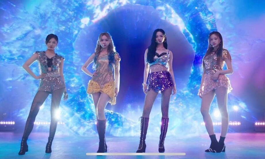 Chẳng hạn như trong MV Ice Cream, các cô gái nhà YG Ent có nhiều lần kết hợp áo bơi với chân váy hoặc quần soóc và đến aespa thì công thức này xuất hiện dày đặc.