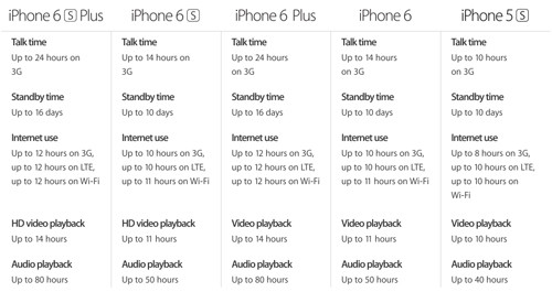 Apple cũng đã điều chỉnh để thời gian sử dụng pin của iPhone 6s và 6s Plus giữ nguyên so với năm trước, nhưng đây thực sự là một tin không vui vì nó thể hiện một bước lùi của Apple khi không thể đáp ứng kỳ vọng của người dùng trong việc tăng thời lượng pin qua các năm.