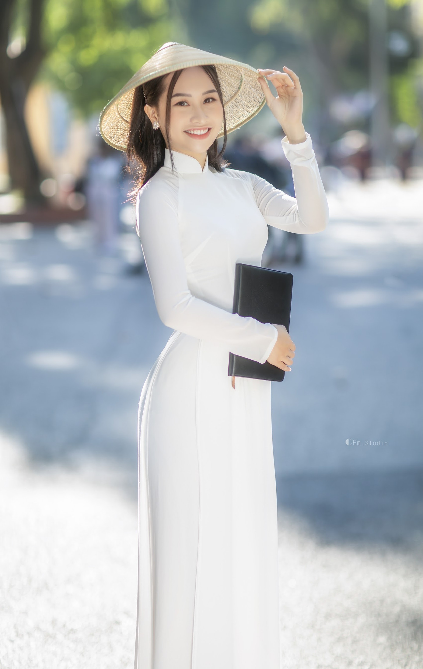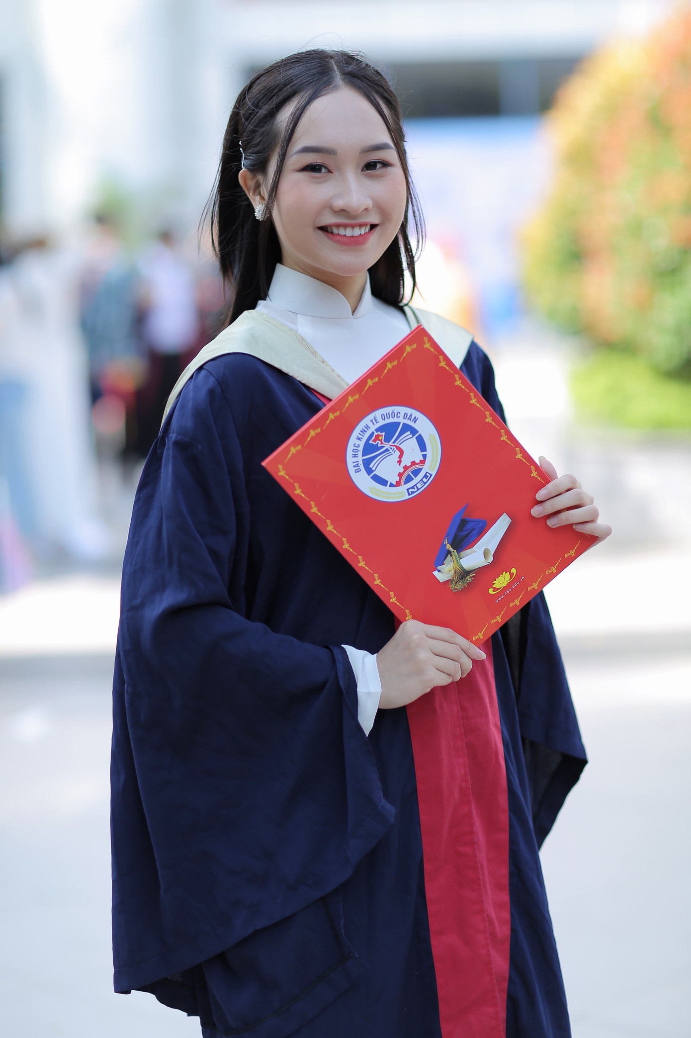 Cũng giống như bạn bè đồng trang lứa, cô gái “con nhà người ta” - Á khôi Đại học Kinh tế Quốc dân - Phan Thanh Thảo đã có một mùa kỷ yếu hết sức ý nghĩa và xúc động. Thảo lựa chọn cho mình áo dài trắng thướt tha, vô cùng giản dị mà không kém phần duyên dáng trong ngày đáng nhớ này.