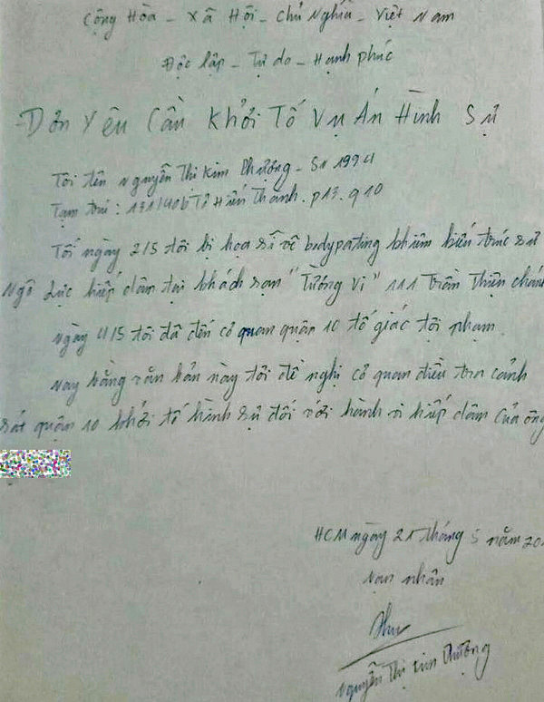 Đơn tố cáo của Kim Phượng (Ảnh: Giao thông).