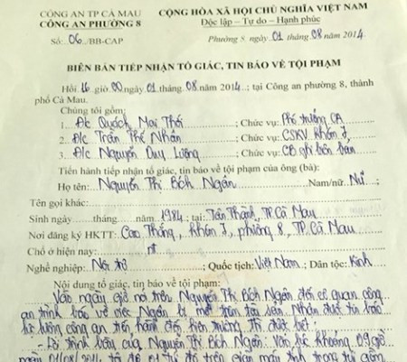 Theo chị Nguyễn Thị Bích Ngân (SN 1984) trình bày, ngày 31/8/2015, nghe bạn bè nói về thông tin báo đăng một nữ công nhân làm việc tại Nhà máy xử lý rác Cà Mau nhặt được vàng nhưng lại bị lãnh đạo nhà máy lập biên bản đòi sung công gây bức xúc nên chị tò mò tìm hiểu.