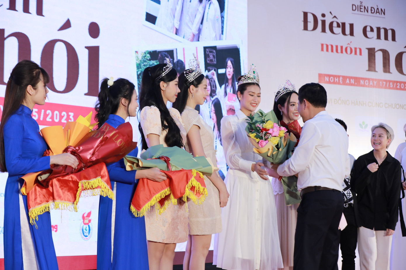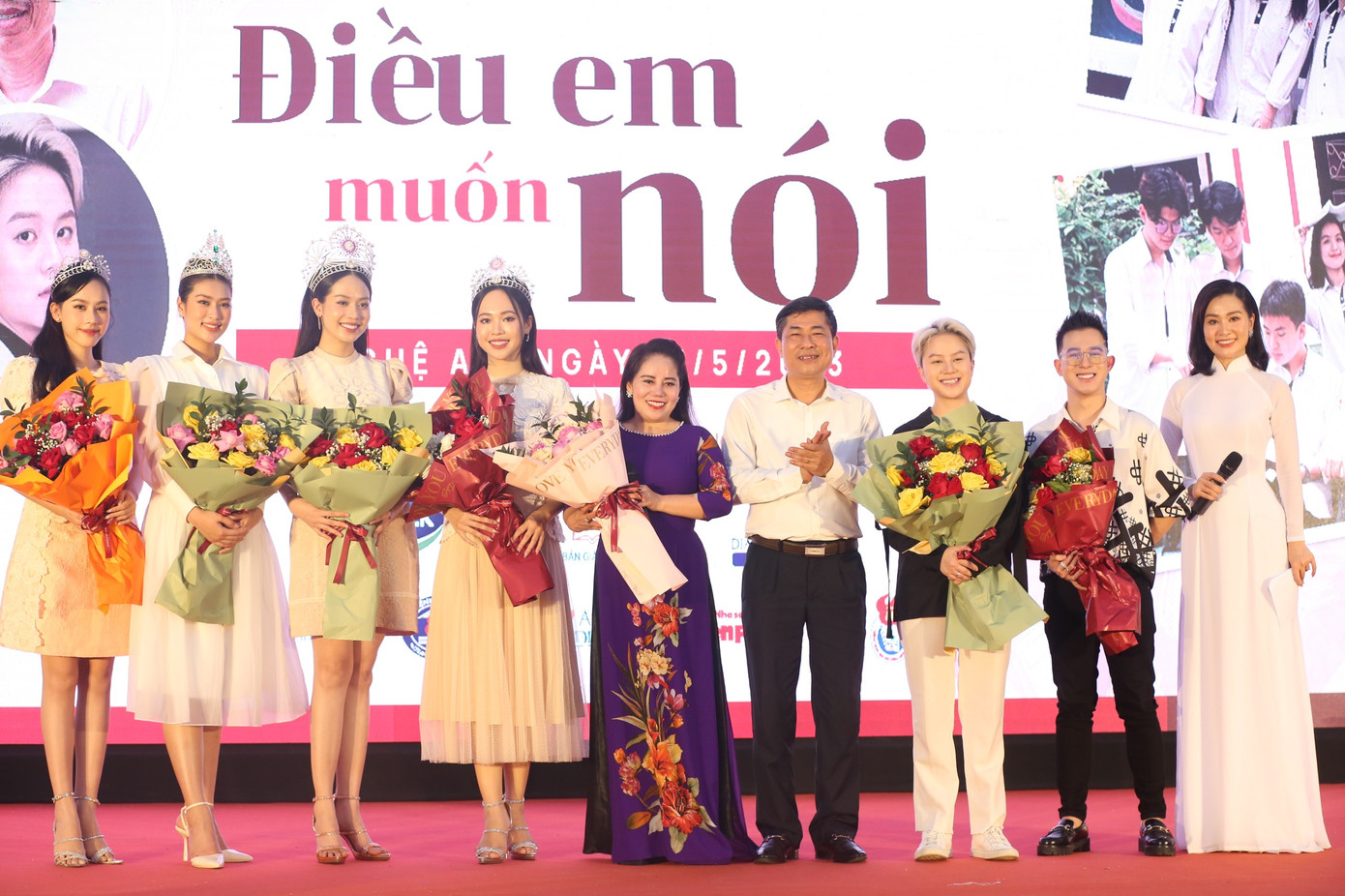 Xin trân trọng cảm ơn các Quý vị đại biểu, các vị khách mời, các thầy cô các hoa hậu, á hậu, diễn viên. Đặc biệt, để chương trình thành công tốt đẹp, đúng mục đích yêu cầu đề ra, xin cảm ơn sự có mặt của các bậc phụ huynh, các em học sinh, nhân vật trung tâm của Diễn đàn Điều em muốn nói hôm nay!
