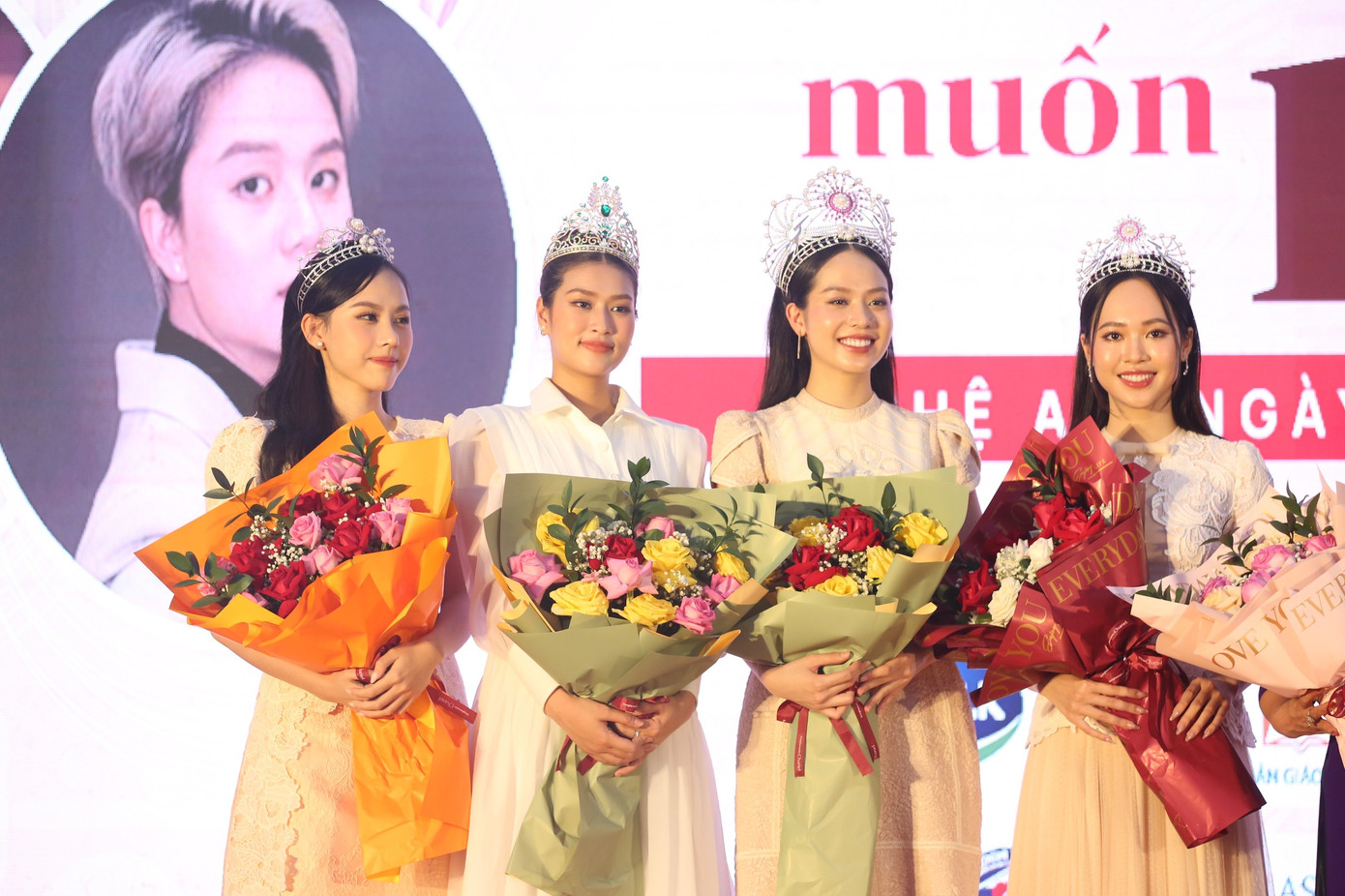 Hoa hậu Việt Nam năm 2022 Huỳnh Thị Thanh Thuỷ, hai Á Hậu Trịnh Thuỳ Linh, Lê Nguyễn Ngọc Hằng; Hoa hậu hòa bình Việt Nam 2022 Đoàn Thiên Ân.