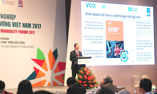 Diễn đàn VCSF 2017 được tổ chức bởi Hội đồng doanh nghiệp vì sự phát triển bền vững Việt Nam (VBCSD), Phòng Thương mại và Công nghiệp Việt Nam (VCCI).