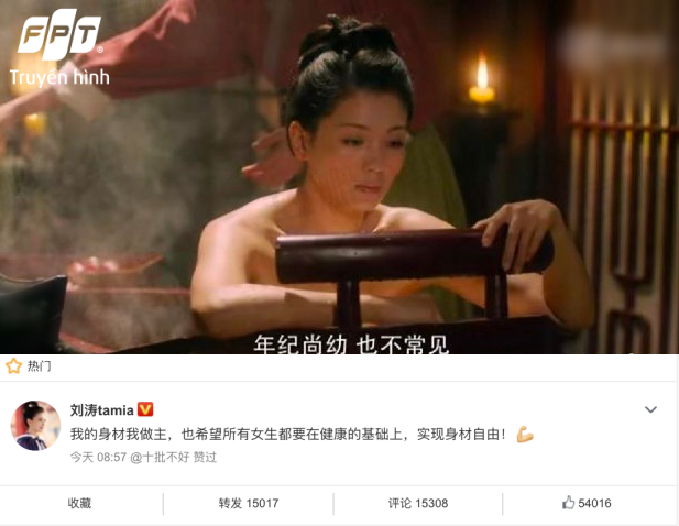 Lưu Đào bị một số bộ phận cư dân mạng chê bai thân hình quá "đô" trong một cảnh tắm phim "Đại Tống Cung Từ" đang phát sóng. Phản hồi về vấn đề này, nữ diễn viên mới đây đã lên tiếng trên trang Weibo cá nhân: "Cơ thể của tôi, tôi làm chủ, hy vọng tất cả các cô gái đều có quyền tự do làm chủ cơ thể mình, trên cơ sở lành mạnh sức khoẻ”