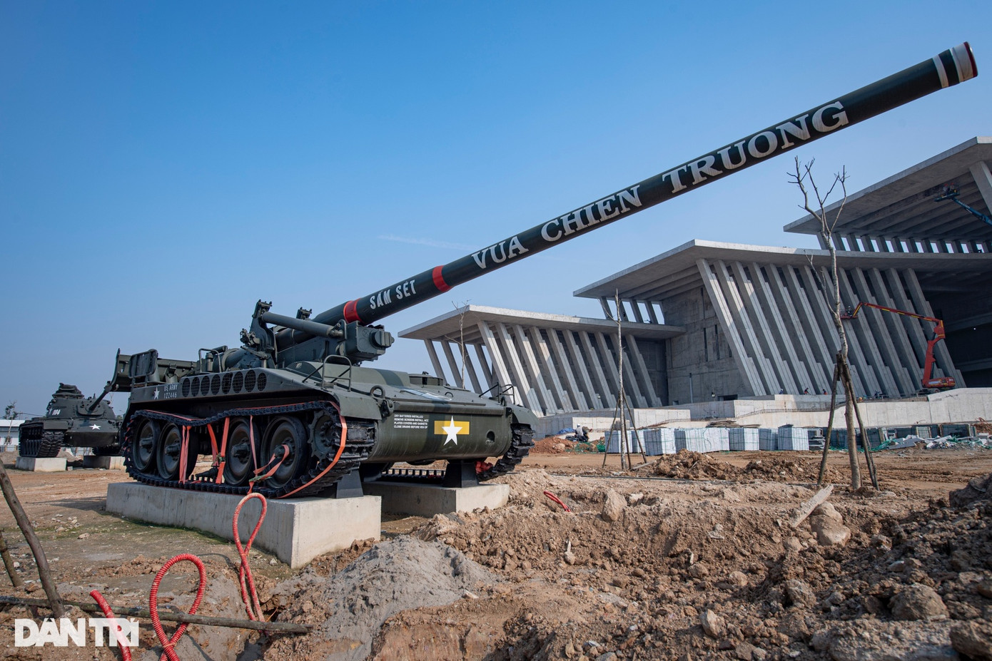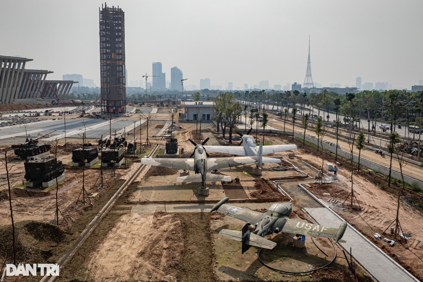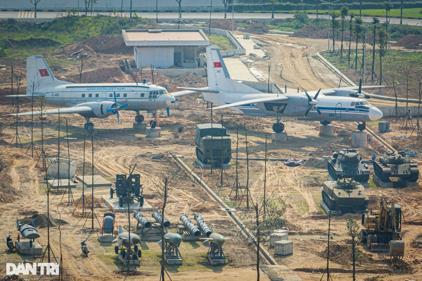 Theo ghi nhận của phóng viên Dân trí, các hạng mục chính của dự án giai đoạn 1 về cơ bản đã hoàn thành phần thô, công nhân đang gấp rút thi công nội thất và cảnh quan bên ngoài, rất nhiều hiện vật như máy bay chiến đấu, máy bay vận tải quân sự, xe tăng... đã được vận chuyển đến vị trí trưng bày.