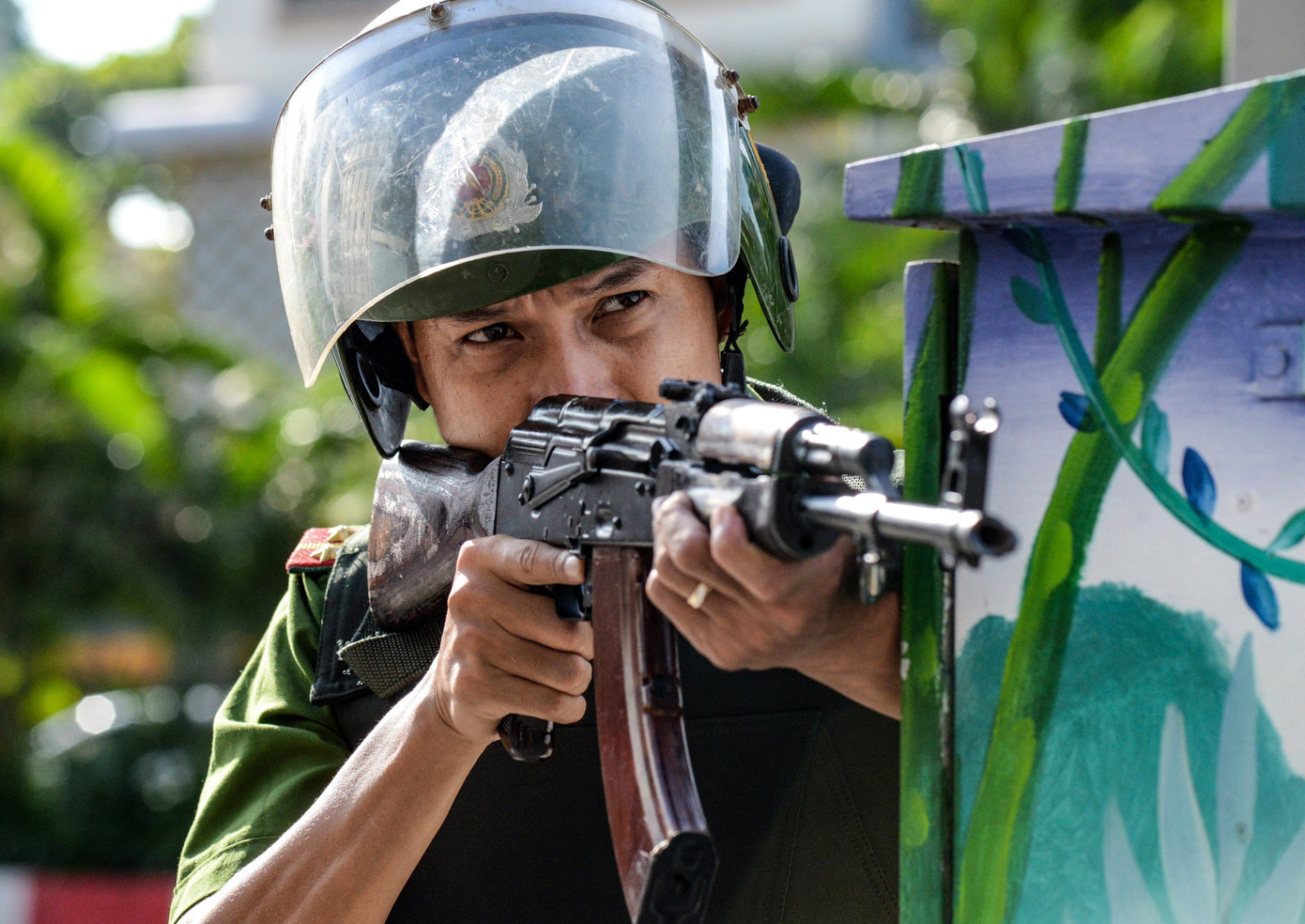 | Tình huống giả định đặt ra, một nhóm cướp có vũ khí xông vào tiệm vàng khống chế con tin nhằm cướp tài sản. |