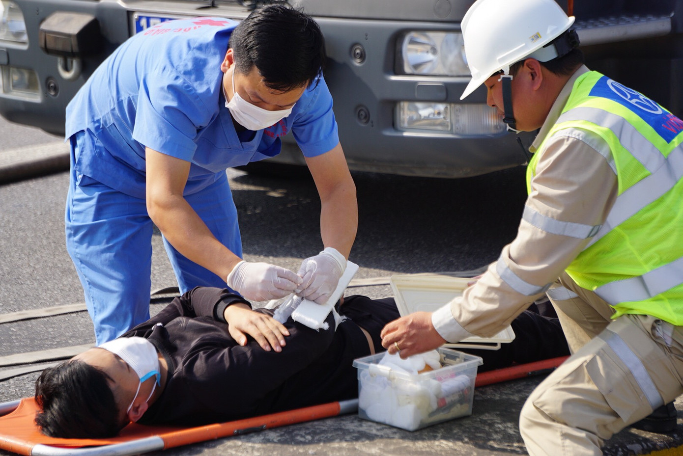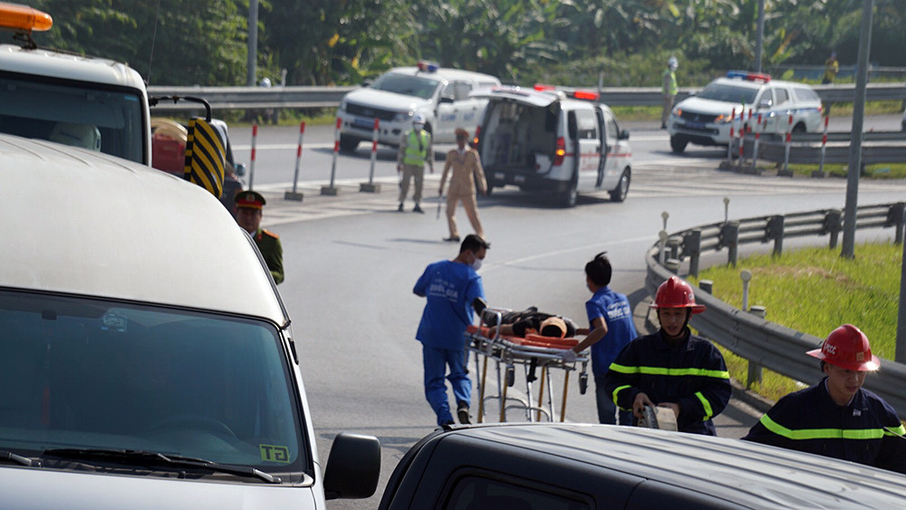 Ngay sau khi tới hiện trường, lực lượng vận hành cao tốc, CSGT, phối hợp với lực lượng y tế sơ cứu và đưa người bị thương.