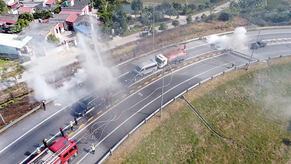 Liên ngành giả định hệ thống giám sát và người dân đi đường thông báo, tại nút giao quốc lộ 10 hướng từ Hải Phòng ra Trạm thu phí cao tốc Hà Nội - Hải Phòng xảy ra va chạm liên hoàn giữa 5 p hương tiện khiến 2 người bị thương, giao thông ùn tắc. Các xe gặp nạn chết máy, cột khói lửa bốc lên, nguy cơ cháy nổ cao.